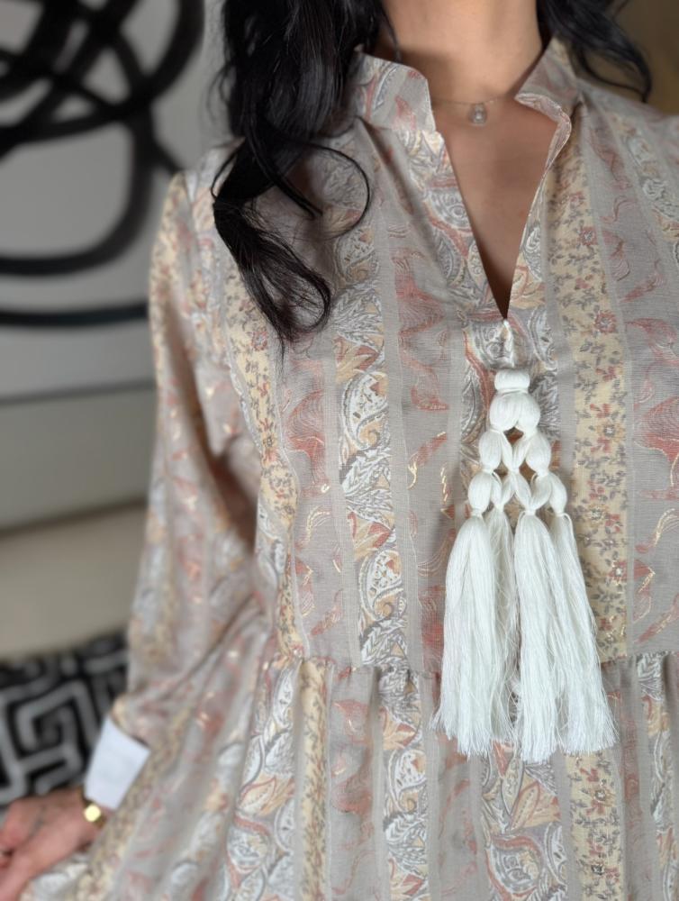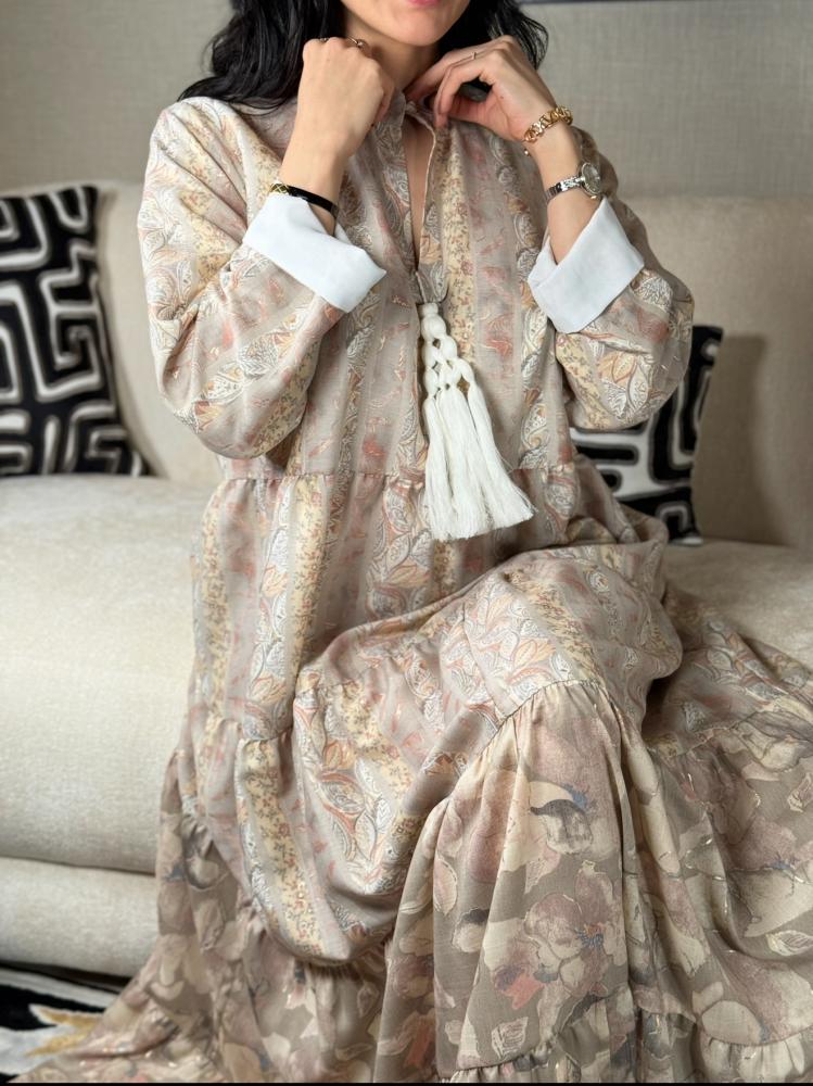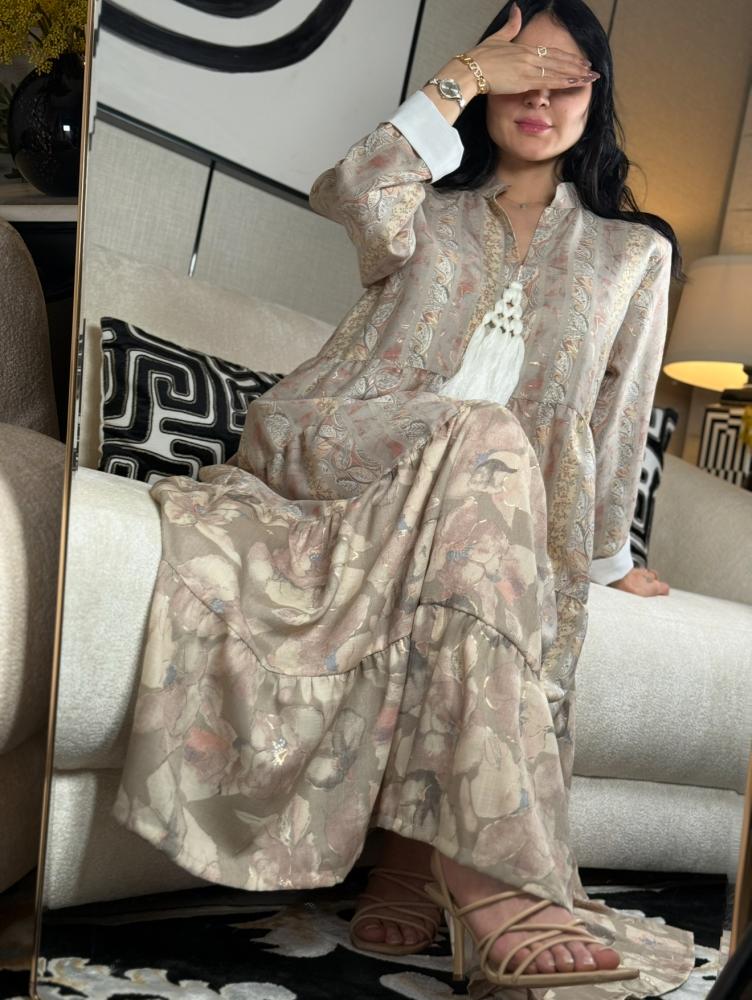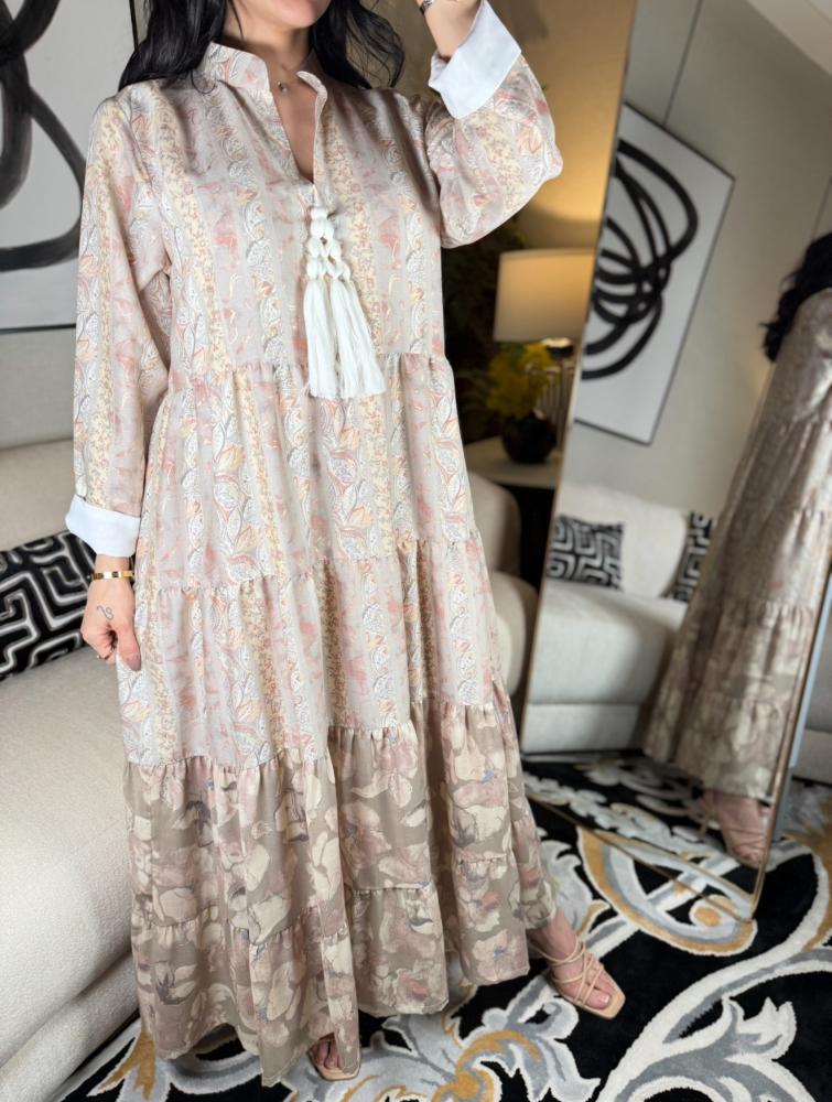 جلابية راقية جداً مصممة خصيصاً لاجواء الصيف خامة مميزة باردة لنن وقطن طبيعي تسمح بتنفس الجلد في الاجواء الحارة والمعتدلة بتشجيرة ناعمة بالوان الباستيل المحببة للنفس بتصميم واسع مراعين الراحة بالملبس مع تبطين للاكمام للسماح بثنيها حسب الرغبة مع دندوشة مناسبة للالوان